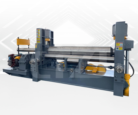 上輥萬(wàn)能式卷板機(jī)屬于液壓型三輥卷板機(jī),用于常溫狀態(tài)下將板材卷成圓筒形、圓弧形、圓錐形。上輥可以垂直移動(dòng)、水平移動(dòng)。上輥垂直位移采用液壓傳動(dòng),水平移動(dòng)采用機(jī)械傳動(dòng)。具備板端預(yù)彎功能,通過(guò)上輥水平移動(dòng),使上輥相對(duì)于下輥呈非對(duì)稱(chēng)位置來(lái)實(shí)現(xiàn)板端預(yù)彎。